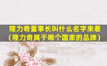 隆力奇董事长叫什么名字来着(隆力奇属于哪个国家的品牌)