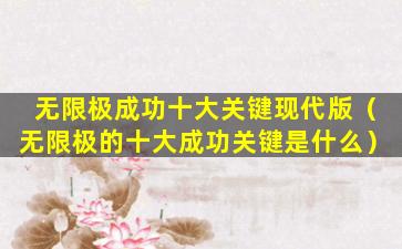 无限极成功十大关键现代版(无限极的十大成功关键是什么)
