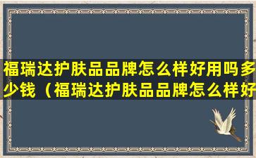 福瑞达护肤品品牌怎么样好用吗多少钱(福瑞达护肤品品牌怎么样好用吗多少钱一瓶)