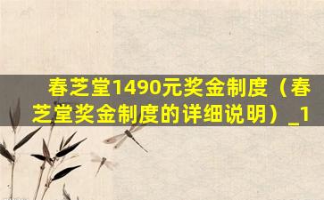 春芝堂1490元奖金制度(春芝堂奖金制度的详细说明)