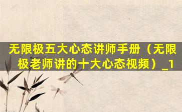 无限极五大心态讲师手册(无限极老师讲的十大心态视频)