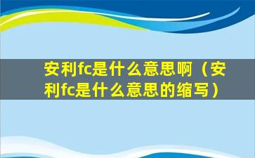 安利fc是什么意思啊(安利fc是什么意思的缩写)