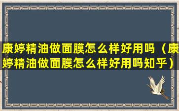 2、康婷精油做面膜怎么样好用吗知乎