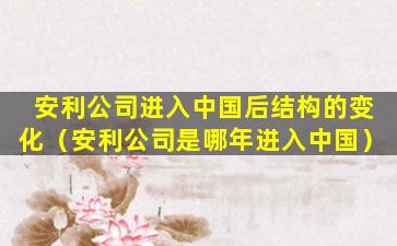 安利公司进入中国后结构的变化(安利公司是哪年进入中国)