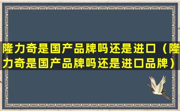 1、隆力奇是国产品牌吗还是进口