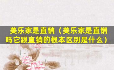 美乐家是直销(美乐家是直销吗它跟直销的根本区别是什么)