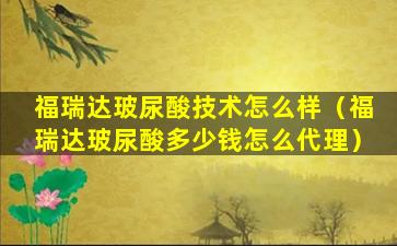福瑞达玻尿酸技术怎么样(福瑞达玻尿酸多少钱怎么代理)