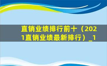 2021直销业绩最新排行