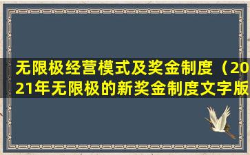无限极经营模式及奖金制度(2021年无限极的新奖金制度文字版)