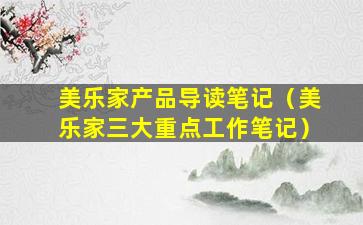 美乐家产品导读笔记(美乐家三大重点工作笔记)