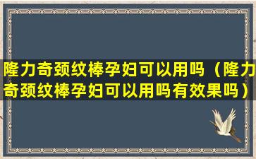 2、隆力奇颈纹棒孕妇可以用吗有效果吗