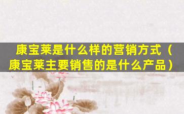 康宝莱是什么样的营销方式(康宝莱主要销售的是什么产品)
