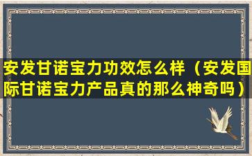 安发甘诺宝力功效怎么样(安发国际甘诺宝力产品真的那么神奇吗)