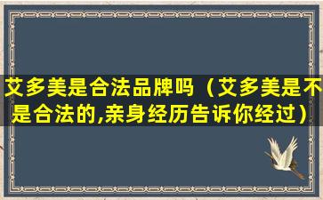 艾多美是合法品牌吗(艾多美是不是合法的,亲身经历告诉你经过)