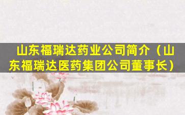 山东福瑞达药业公司简介(山东福瑞达医药集团公司董事长)