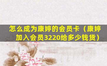 怎么成为康婷的会员卡(康婷加入会员3220给多少钱货)