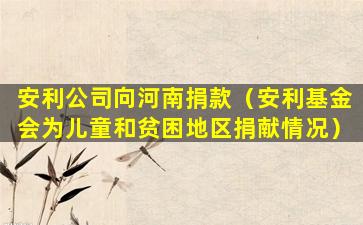 安利公司向河南捐款(安利基金会为儿童和贫困地区捐献情况)