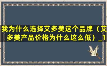 我为什么选择艾多美这个品牌(艾多美产品价格为什么这么低)