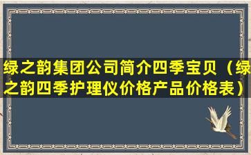 绿之韵集团公司简介四季宝贝(绿之韵四季护理仪价格 产品价格表)