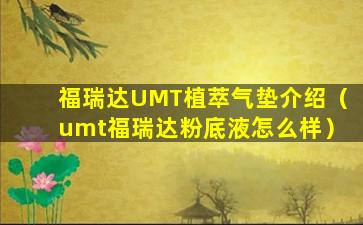 福瑞达UMT植萃气垫介绍(umt福瑞达粉底液怎么样)