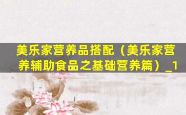 美乐家营养品搭配(美乐家营养辅助食品之基础营养篇)
