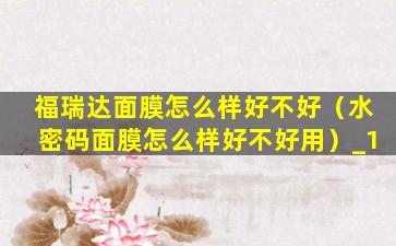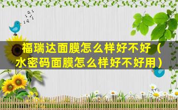 福瑞达面膜怎么样好不好(水密码面膜怎么样 好不好用)