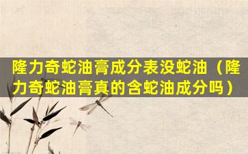 隆力奇蛇油膏成分表没蛇油(隆力奇蛇油膏真的含蛇油成分吗)