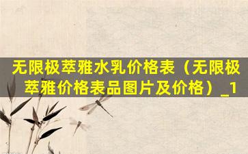 无限极萃雅水乳价格表(无限极萃雅价格表品图片及价格)