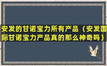 安发的甘诺宝力所有产品(安发国际甘诺宝力产品真的那么神奇吗)