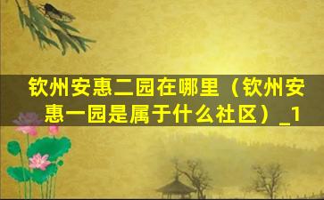 钦州安惠二园在哪里(钦州安惠一园是属于什么社区)