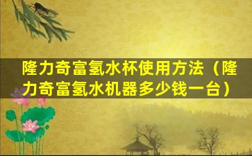 隆力奇富氢水杯使用方法(隆力奇富氢水机器多少钱一台)