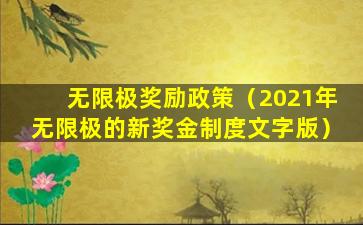 无限极奖励政策(2021年无限极的新奖金制度文字版)