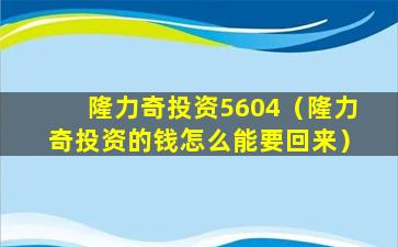 隆力奇投资5604(隆力奇投资的钱怎么能要回来)