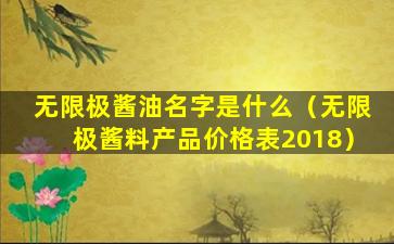 无限极酱油名字是什么(无限极酱料产品价格表2018)