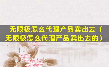 无限极怎么代理产品卖出去(无限极怎么代理产品卖出去的)