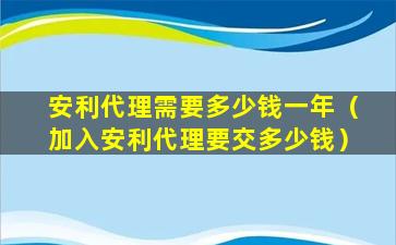 安利代理需要多少钱一年(加入安利代理要交多少钱)