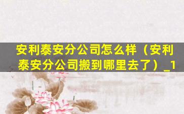 安利泰安分公司怎么样(安利泰安分公司搬到哪里去了)