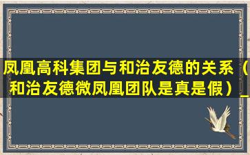 凤凰高科集团与和治友德的关系(和治友德微凤凰团队是真是假)