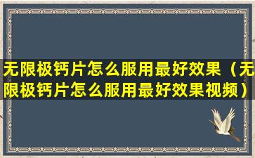 无限极钙片怎么服用最好效果(无限极钙片怎么服用最好效果视频)
