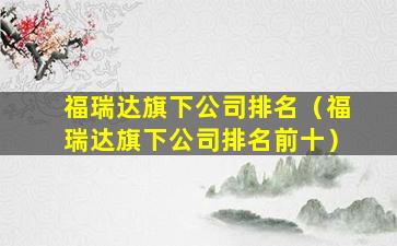 福瑞达旗下公司排名(福瑞达旗下公司排名前十)