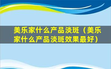 美乐家什么产品淡斑(美乐家什么产品淡斑效果最好)