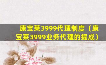 康宝莱3999代理制度(康宝莱3999业务代理的提成)