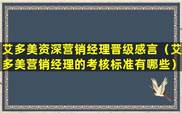 艾多美资深营销经理晋级感言(艾多美营销经理的考核标准有哪些)