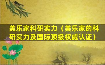 美乐家科研实力(美乐家的科研实力及国际顶级权威认证)