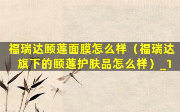 福瑞达颐莲面膜怎么样(福瑞达旗下的颐莲护肤品怎么样)
