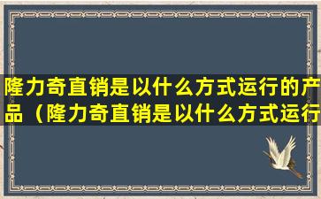 隆力奇直销是以什么方式运行的产品(隆力奇直销是以什么方式运行的产品品牌)