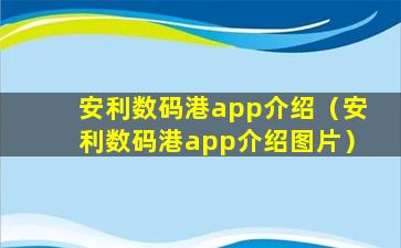 安利数码港app介绍(安利数码港app介绍图片)