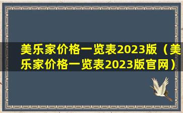 美乐家价格一览表2023版(美乐家价格一览表2023版官网)