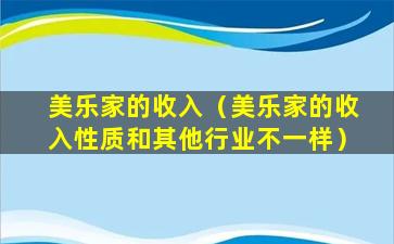 美乐家的收入(美乐家的收入性质和其他行业不一样)
