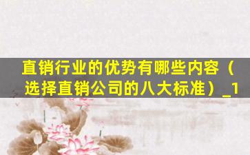 直销行业的优势有哪些内容(选择直销公司的八大标准)